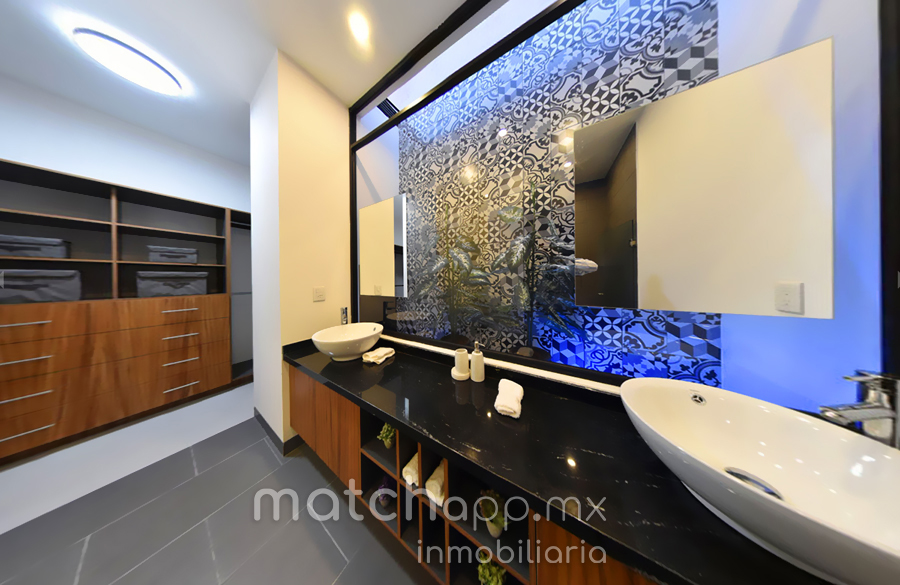 , Habitación principal amplia cabe y sobra espacio para cama kingsize, vestidor y baño privado 2 lavamanos decoración e iluminación especial en tocador.